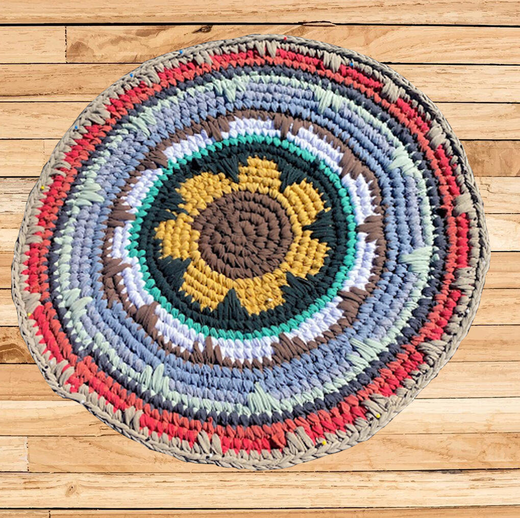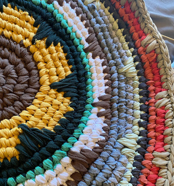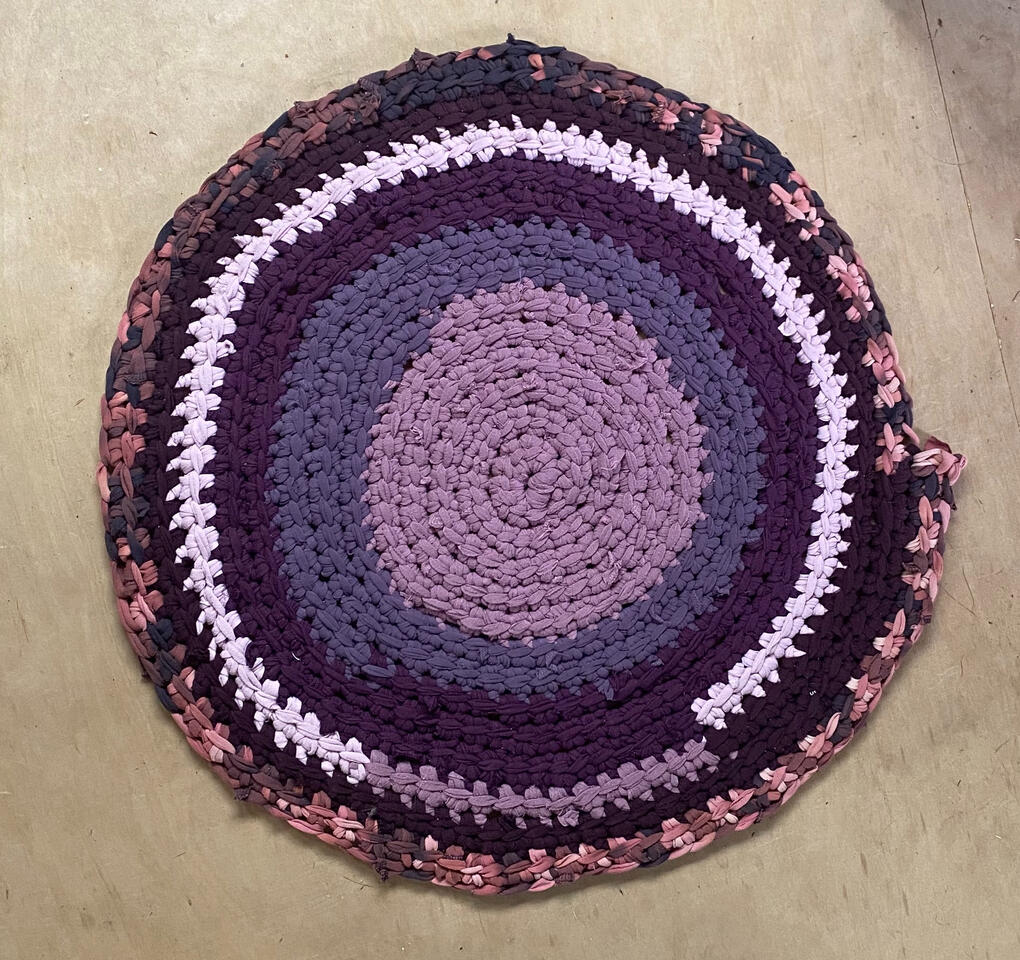 Finger Crocheted in a mesmerizing round pattern. Keeps approximately 7-8 articles of clothing out of the landfill!