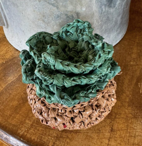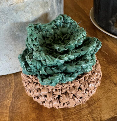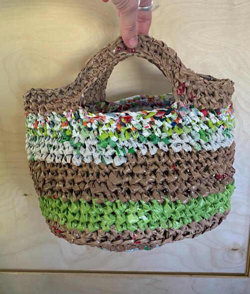 We call it the 'foraging basket' because you can rinse your foraging haul right in the basket! Made entirely of plastic bags, it's waterproof and durable.