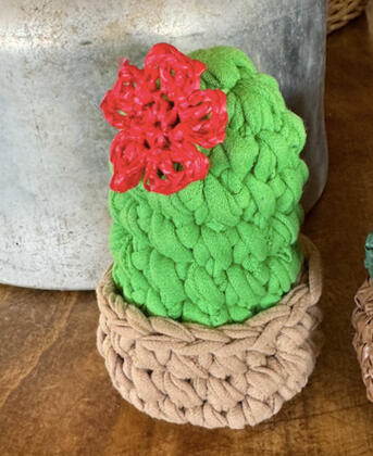 The largest of our current initiatives is the Handmade line, in which we reclaim discarded textiles and turn them into sustainable and versatile yarn, then teach people to knit and crochet in order to earn money while learning a therapeutic hobby.